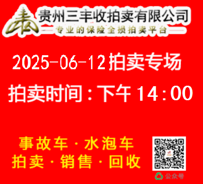 貴州三豐收拍賣(mài)有限公司網(wǎng)絡(luò)拍賣(mài)于2025年06月11日下午14點(diǎn)00準(zhǔn)時(shí)開(kāi)拍 請(qǐng)需要拍賣(mài)車(chē)輛的會(huì)員 通過(guò)二維碼繳納拍賣(mài)保證金或者致電我司繳納保證金 0851-86711666 18275321810 13378515056 18268322089 人工審核